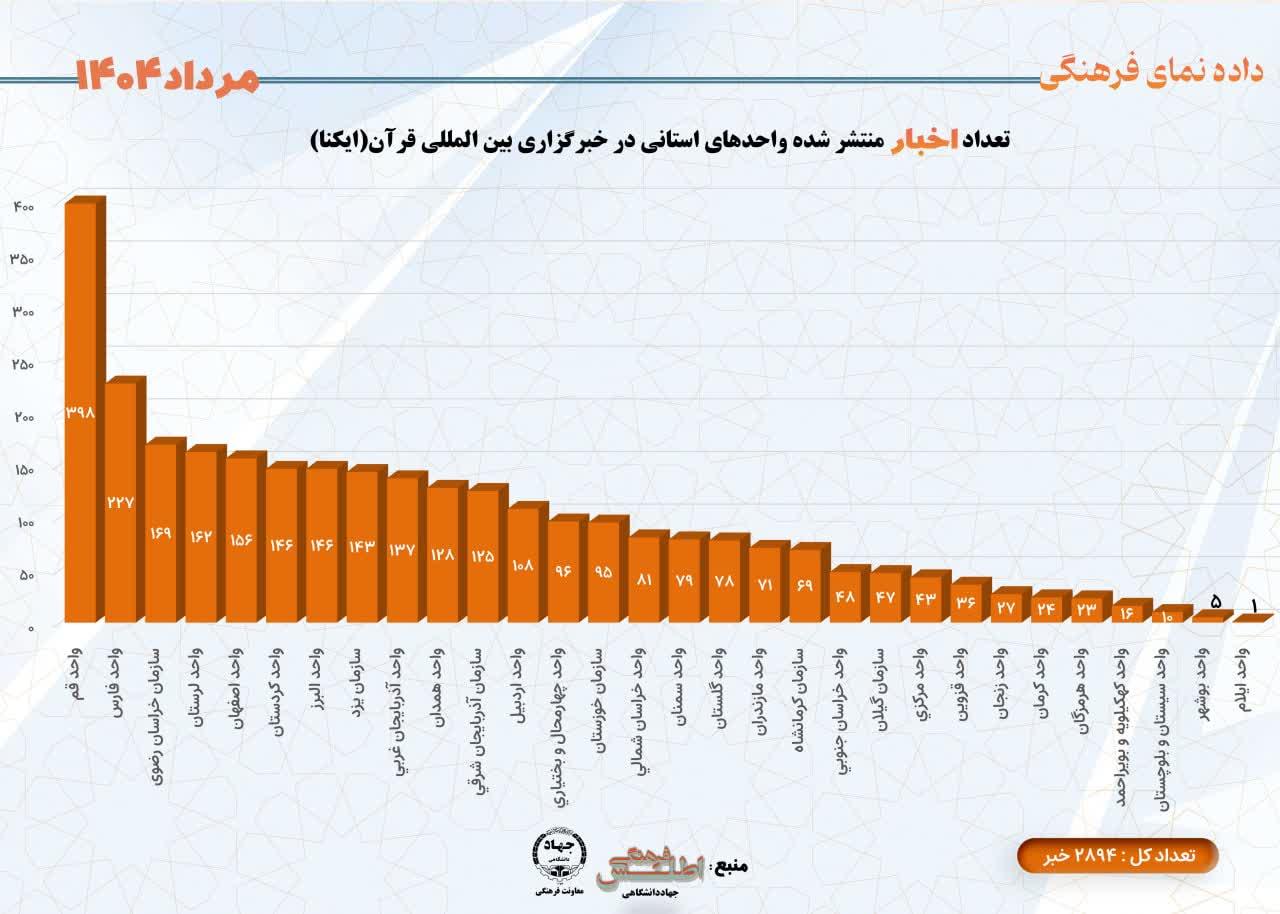 تعداد اخبار منتشر شده واحدهای استانی در خبرگزاری بین المللی قرآن(ایکنا) مرداد ۱۴۰۴