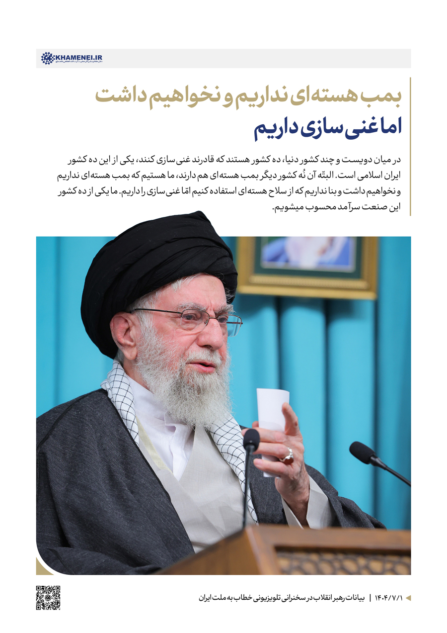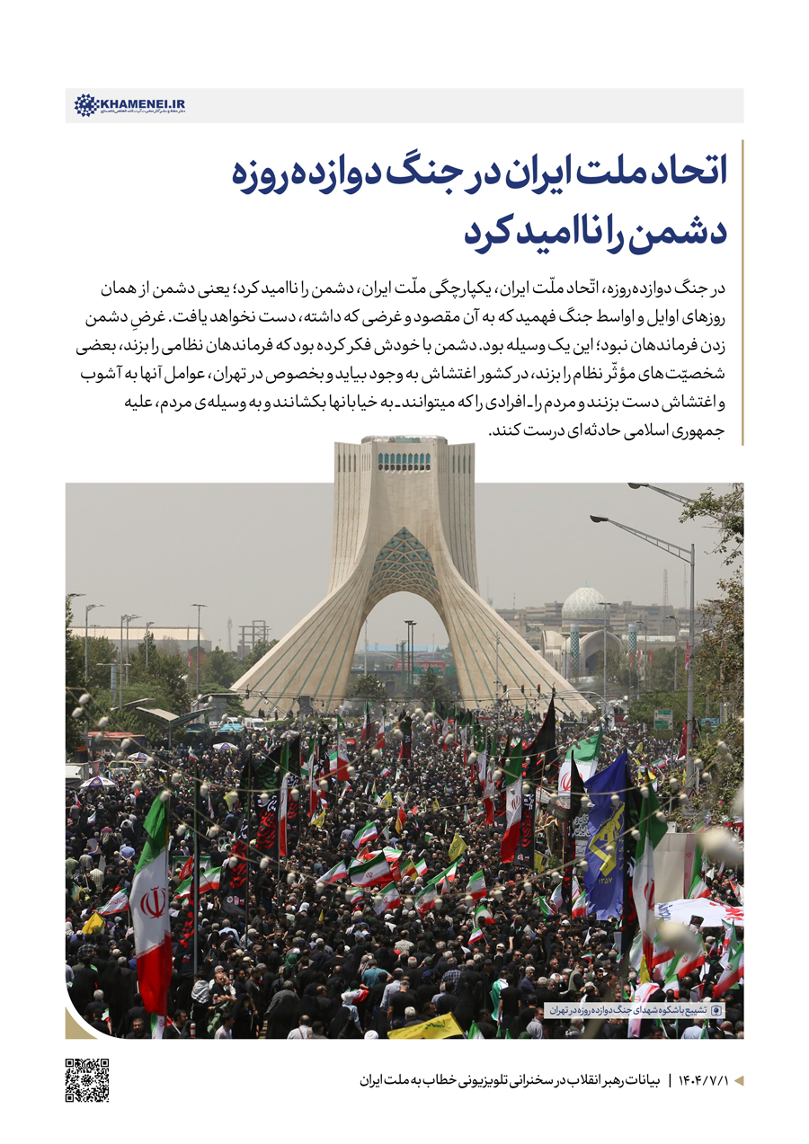 سخنرانی تلویزیونی خطاب به ملت ایران ۰۱ مهر ۱۴۰۴ | ۱۵:۱۲ کد : ۲۵۵۱ رهنمود ارسال به دیگران نام شما ایمیل شما ایمیل دریافتکننده ارسال انصراف تعداد بازدید:۳۱