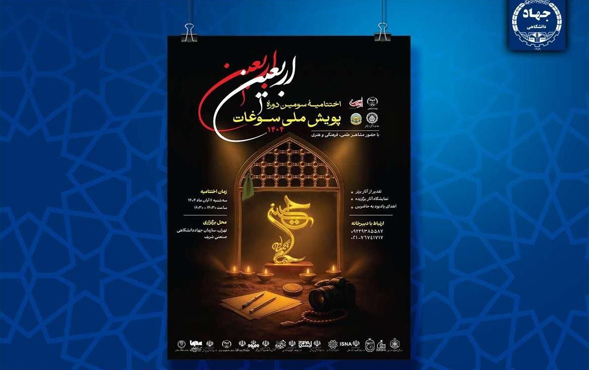 گفتنی است سومین دوره پویش ملی «سوغات اربعین» توسط معاونت فرهنگی سازمان جهاددانشگاهی صنعتی شریف و با همکاری معاونت فرهنگی جهاددانشگاهی و معاونتهای فرهنگی واحدهای استانی در سراسر کشور و با رویکرد متحدالشکل در سه محور ادبی، هنری و نوآوری برگزار شده است.