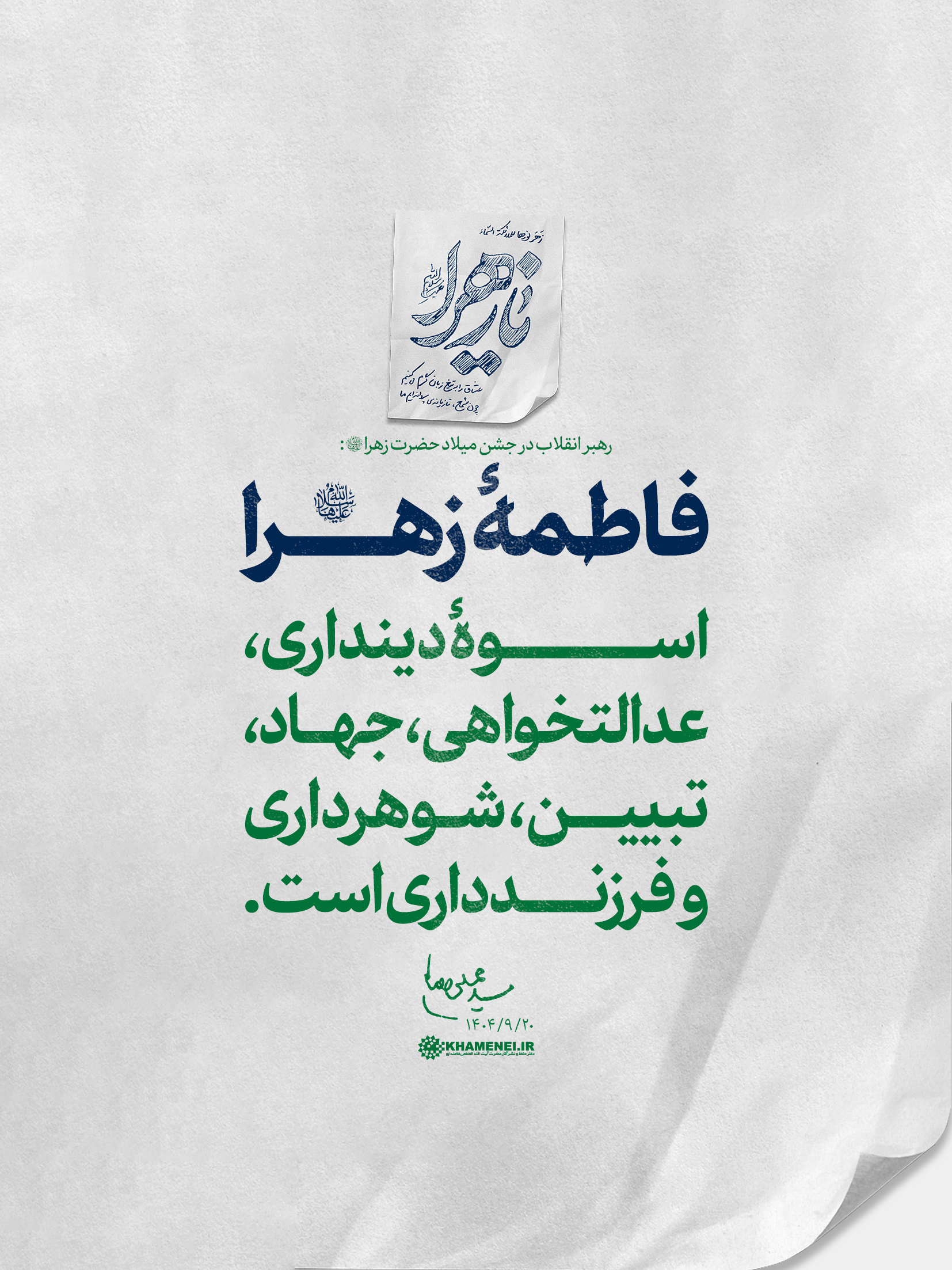 مراسم جشن میلاد حضرت زهرا سلاماللهعلیها در حسینیه امام خمینی(ره) با حضور رهبر انقلاب ۲۵ آذر ۱۴۰۴ | ۱۶:۴۴ کد : ۲۶۴۴ رهنمود ارسال به دیگران نام شما ایمیل شما ایمیل دریافتکننده ارسال انصراف تعداد بازدید:۲۸