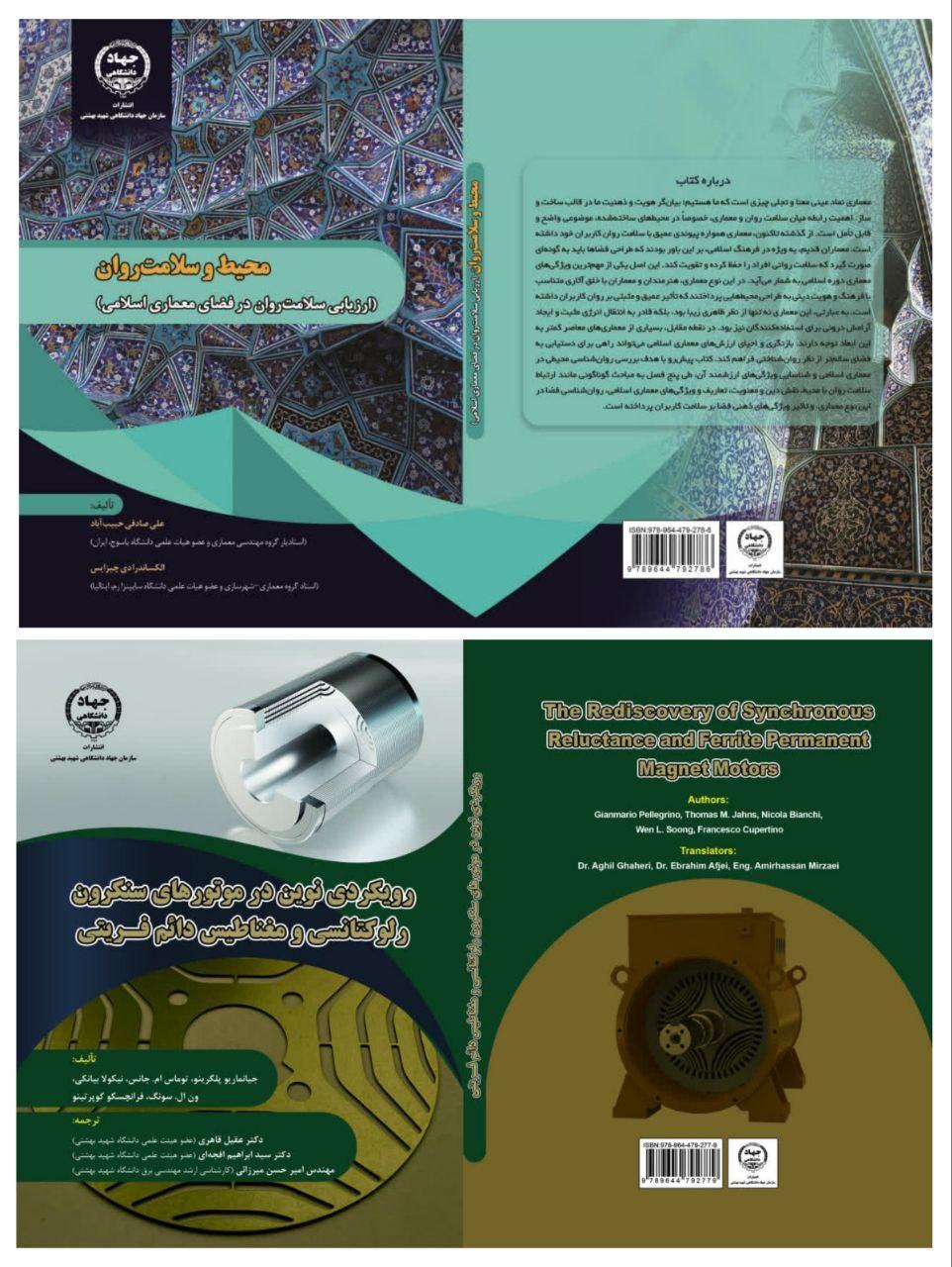 همچنین کتاب «رویکردی نوین در موتورهای سنکرون رلوکتانسی و مغناطیس دائم فریتی» تالیف دکتر عقیل قاهری و دکتر سید ابراهیم افجهای، اعضای هیئت علمی دانشگاه شهیدبهشتی و مهندس امیر حسن میرزائی در 176 صفحه، در قطع وزیری و با قیمت سه میلیون ریال منتشر شده است. در بخشی از مقدمه کتاب میخوانیم: نوسانات شدید قیمت فلزات کمیاب نئودیوم و دیسپروزیم در فاصله سالهای ۲۰۱۰ تا ۲۰۱۴، موجب شد جستجوی گستردهای برای یافتن ساختارهای جایگزین ماشینهای سنکرون با آهنربای دائمی و عملکرد بالا انجام گیرد که معمولاً از آهنرباهای فشرده نئودمیم-آهن-بور استفاده میکنند. ساختارهای اصلی جایگزین ماشینهای سنکرون بدون جاروبک هستند که موضوع کتاب حاضر است.
