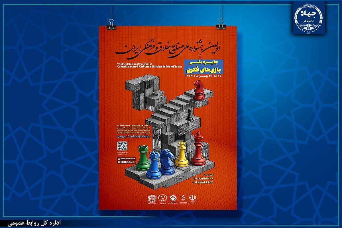 جشنواره ملی صنایع خلاق و فرهنگی ایران به همت معاونت فناوری و نوآوری وزارت عتف برگزار میشود و جهاددانشگاهی هنر میزبانی جایزه ملی بازیهای فکری ایران را با دبیری امین مختاری رئیس این واحد بر عهده دارد.