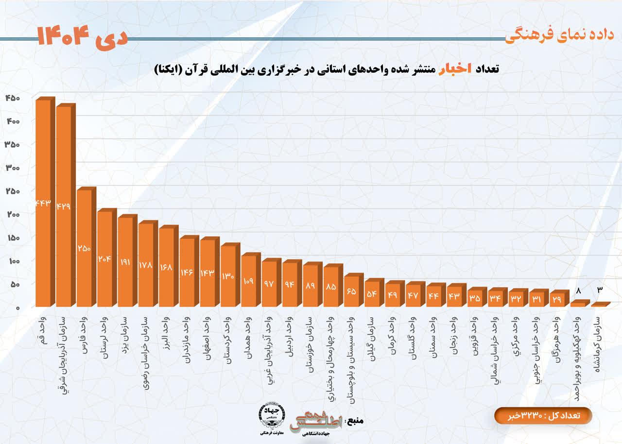 تعداد اخبار منتشر شده واحدهای استانی در خبرگزاری بین المللی قرآن(ایکنا)