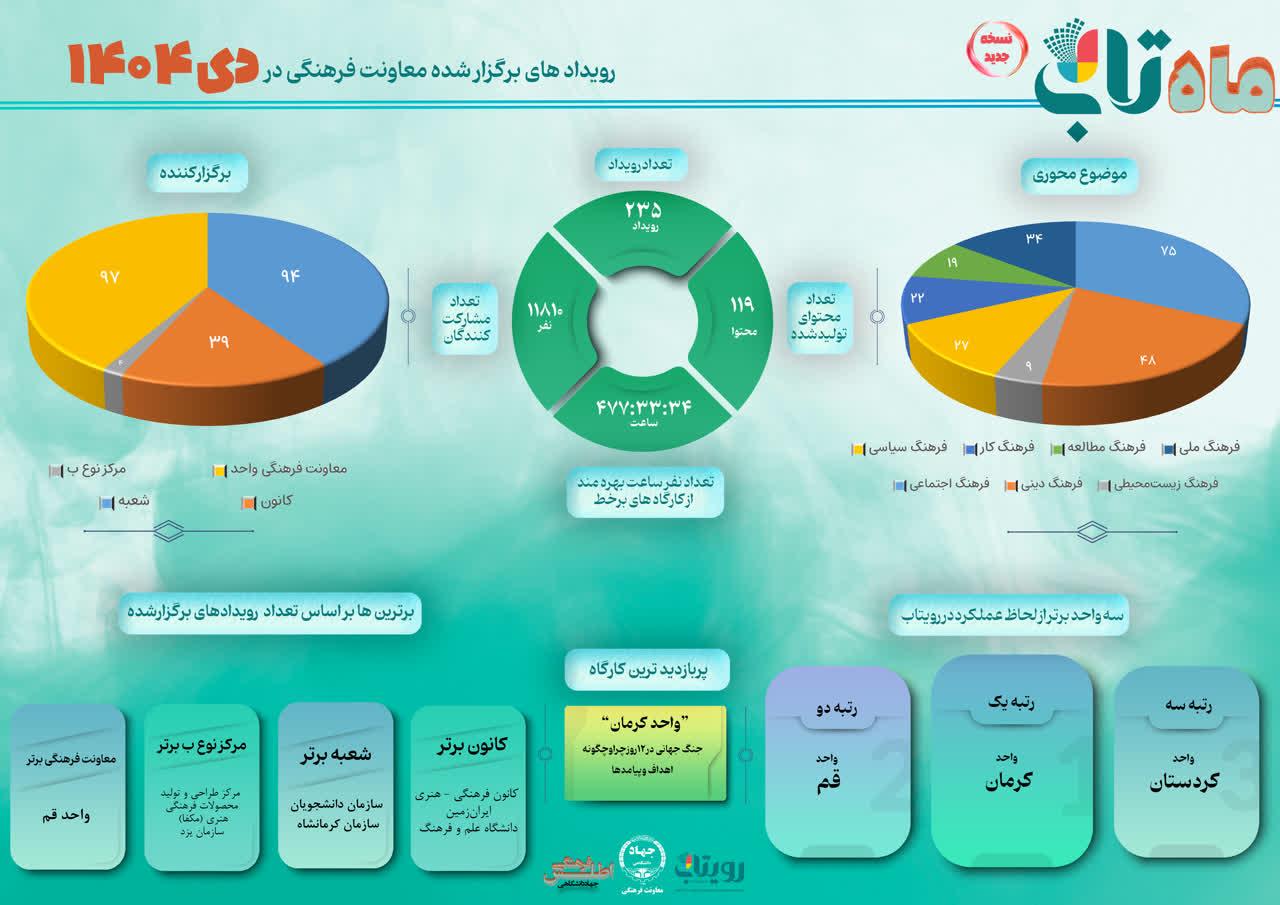 بررسی رویدادهای بازتاب داده شده سازمان ها، مراکز و واحدهای استانی تابعه معاونت فرهنگی جهاددانشگاهی